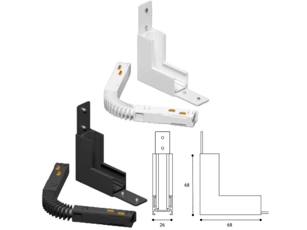 Rohová vertikální spojka povrchové lišty k 48V magnetickému systému.